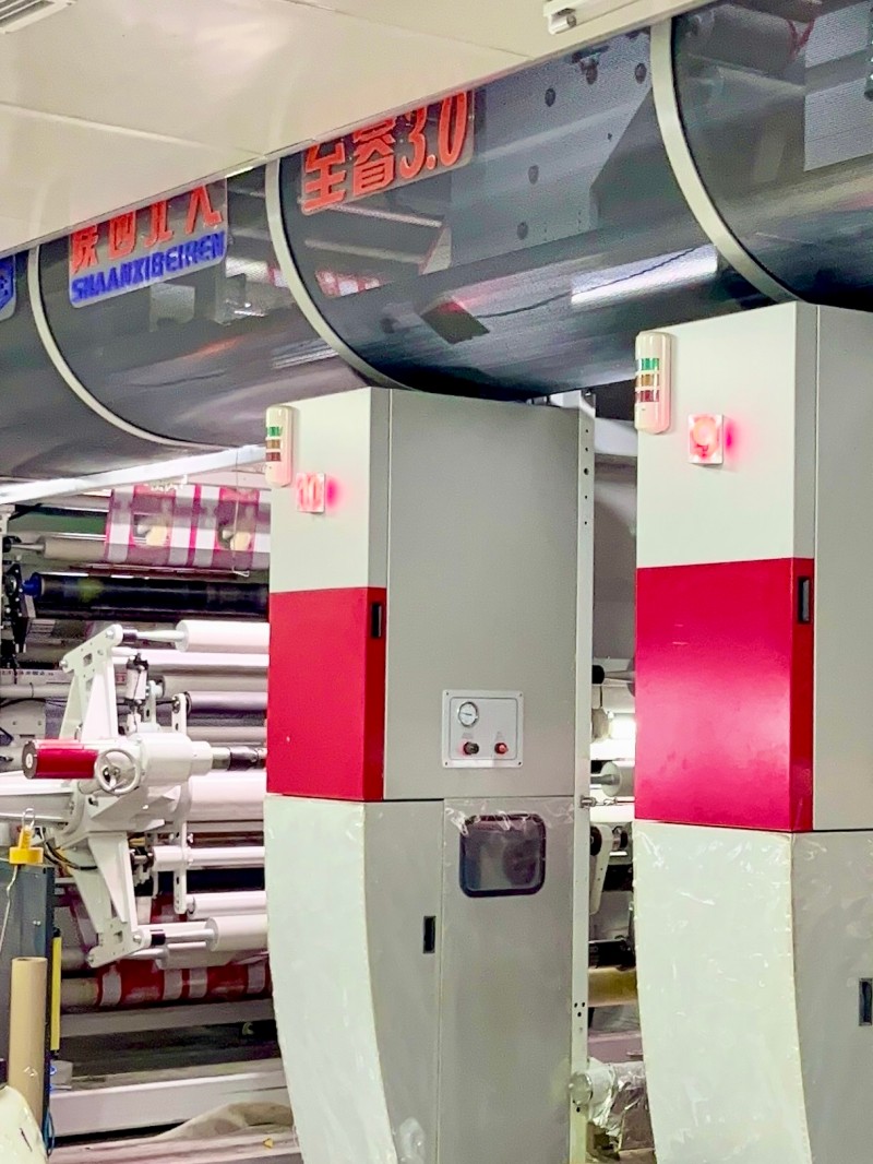 引進(jìn)了數(shù)臺(tái)八到十色的高速凹版印刷機(jī)、高速干式復(fù)合機(jī)、無(wú)溶劑復(fù)合機(jī)、多功能制袋機(jī)、分切機(jī)、檢品機(jī)、全自動(dòng)燙嘴機(jī)等生產(chǎn)設(shè)備,配有性能優(yōu)越的電腦自動(dòng)彩色套印系統(tǒng)和電腦跟蹤系統(tǒng)。